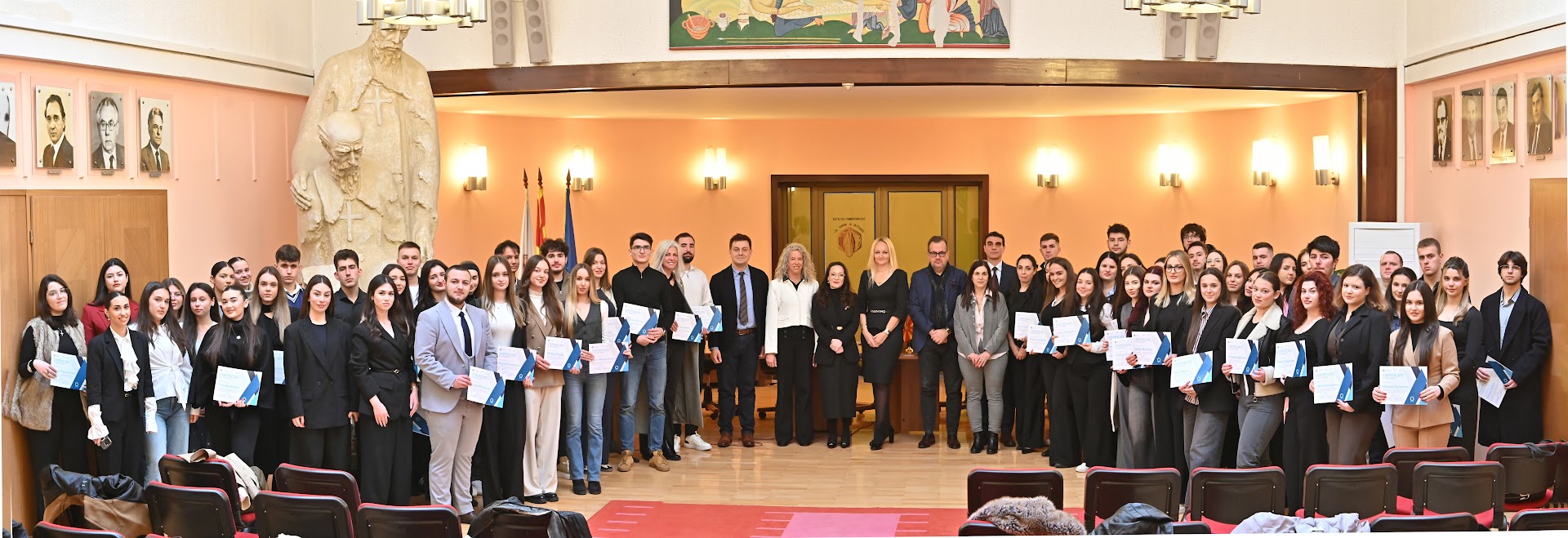 Во рамките на настанот беа доделени и сертификатите за завршените универзитетски курсеви за изучување на холокаустот на 82 студент на УКИМ, кои во изминатиот семестар ја следеа програмата организирана на Правниот факултет „Јустинијан Први“. Со тоа бројот на студентите кои ја следеле оваа програма во изминатите три години се искачи на вкупно 375 студентите.